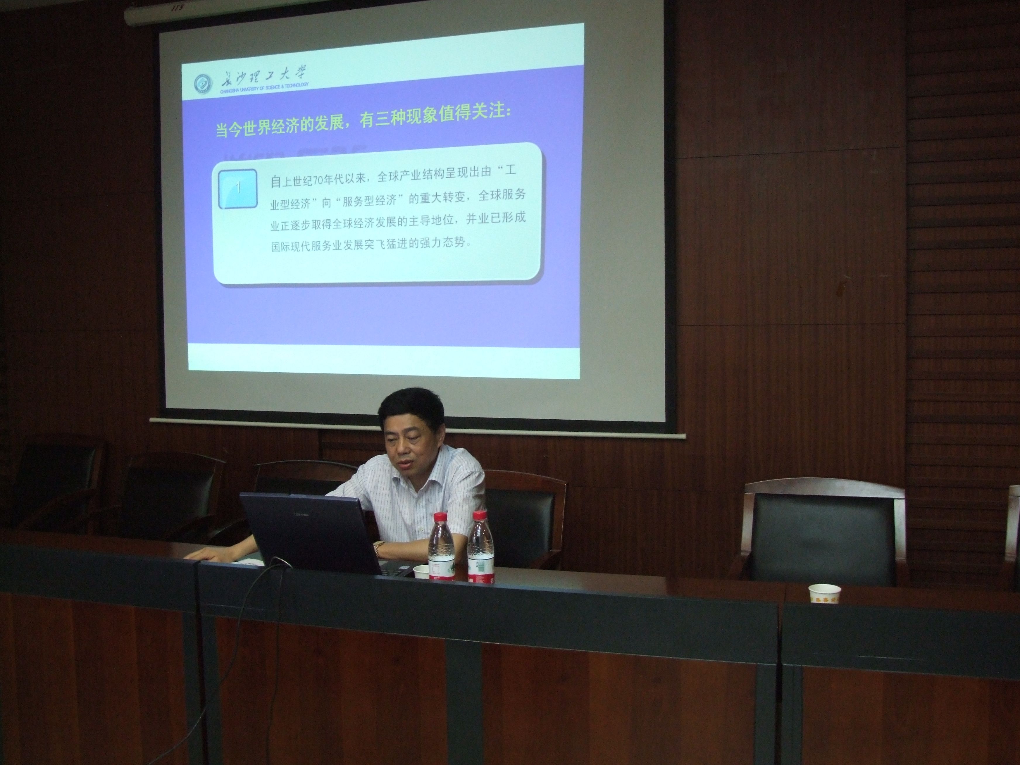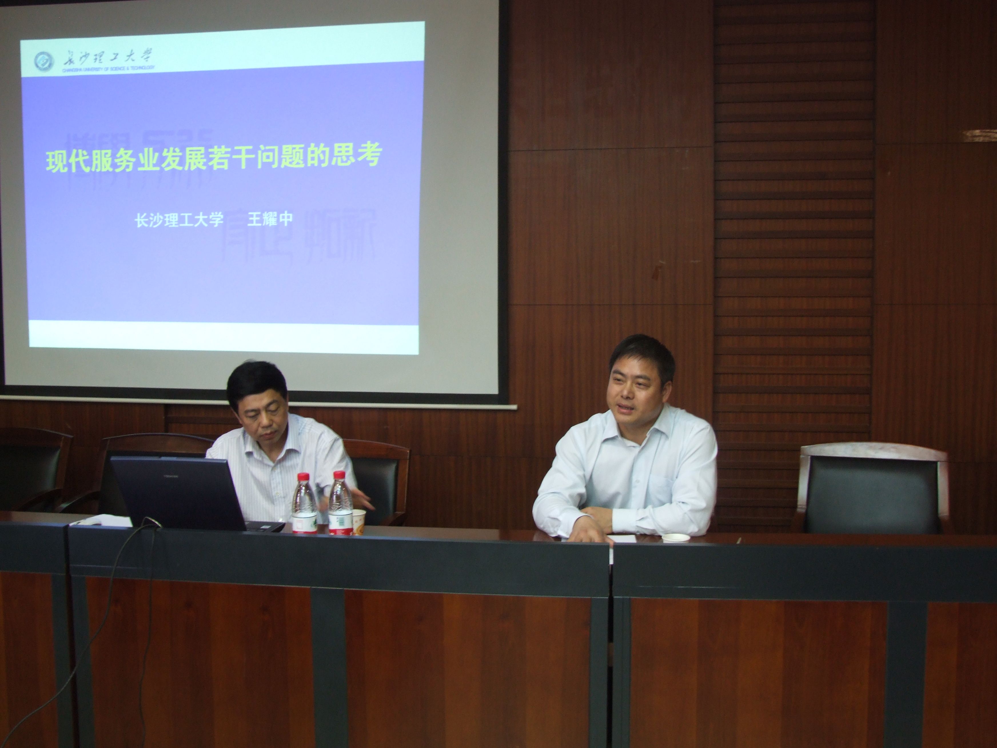 长沙理工大学党委书记王耀中教授来杏吧 举办学术讲座 5月18日下午15:30,长沙理工大学党委书记、博士生导师王耀中教授在杏吧 文泉楼二楼杏吧 会议室,为杏吧 师生作题为“现代服务业发展中的若干问题”的学术讲座。杏吧 邹进文院长、陈银娥副院长、金融杏吧 宋清华院长、唐文进副院长以及杏吧 、金融学校部分师生认真聆听了王教授的精彩讲座。此次讲座由杏吧 和金融杏吧 共同举办,讲座由金融杏吧 宋清华院长主持,宋院长在讲座开始前向大家介绍王耀中教授的基本情况。