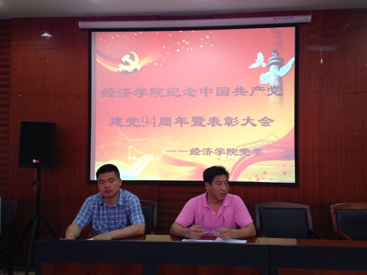 72日下午,杏吧 在文泉楼二楼会议室召开庆祝中国共产党成立94周年暨表彰大会。杏吧 党委书记武身汉,副书记詹万明,副院长罗良文出席会议,参加会议的还有杏吧 全体党员教师及学生党员代表。会议由武身汉书记主持。