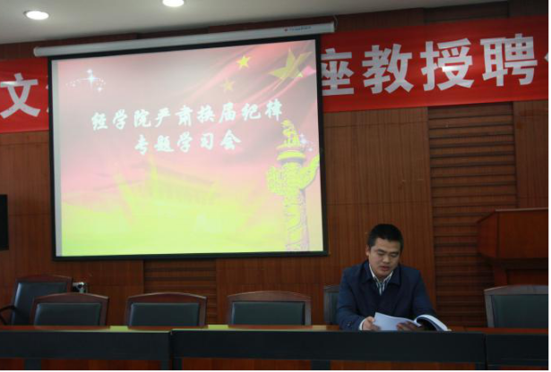 10月13日下午14:30分于文泉南206会议室,召开了杏吧 10月份主题党日活动大会。本次大会由杏吧 党委副书记詹万明主持,全院党员教师参加会议。 本次大会分为三个部分,詹万明副书记组织“两学一做”之“讲道德、有品行”专题学习、全体党员观看警示教育片《镜鉴》、各党支部开展以严肃换届纪律为主题的专题学习活动。