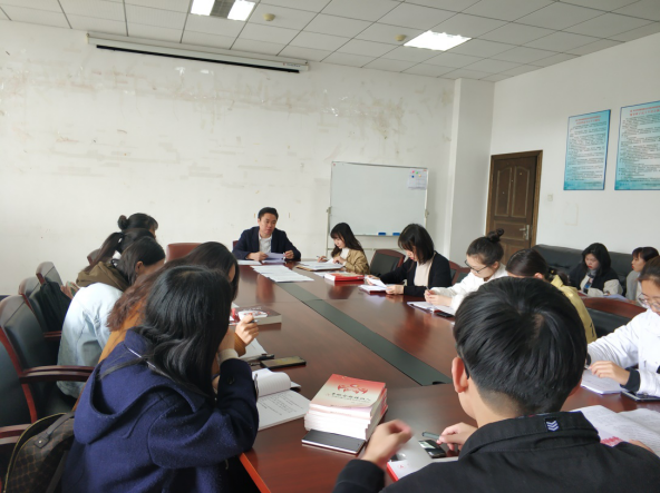2019年4月11日中午12点,杏吧 国际商务专业本科生党支部在文泉南207会议室召开4月份支部主题党日活动,活动由宋昀宜老师主持,杏吧 国际商务专业全体本科生党员和预备党员出席。本次活动的主题为“学习贯彻习近平总书记关于总体国家安全观重要论述精神、学习贯彻习近平总书记关于思想政治工作重要论述精神”。