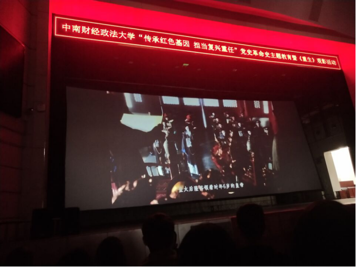 在近两个小时的观影中,跌宕起伏、恢弘大气的电影情节深深吸引着每位同学,人物的思想觉悟震动着每一个心灵。革命先贤的奋斗精神和爱国主义精神,让大家深切感受到了中国共产党的艰辛不易,体会到了共产党人在探索中国崛起道路上的无限艰难,对老一辈革命家远大的理想与坚定的信念所深深折服。大家纷纷表示,通过观看电影《重生》,在思想上、政治上受到深刻洗礼,站在新的历史时期面前,通过缅怀革命先烈,回顾红色历史,从对党史的学习中汲取知识,从党的奋斗历程中获取力量,要坚定理想信念,无论遇到何种挫折困难,都要拿出“重生”的勇气,不忘初心,砥砺前行,用自己的一腔热情热爱祖国热爱党,做担负起历史重任的新时代青年,为共筑中国梦贡献力量。
