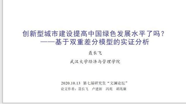 武汉大学经济与管理杏吧 的聂长飞博士作了《创新型城市建设提高中国绿色发展水平了吗?——基于双重差分模型的实证分析》的报告。聂长飞博士生表示因为中国环境形势不容乐观,党和政府已经将绿色发展的重要性提到了前所未有的高度因此提升绿色发展水平的现实意义。本研究试图回答一下问题:创新型城市建设能否提升试点城市的GTFP?如果答案是肯定的,那么创新型城市建设的绿色发展效应是否存在异质性?创新型城市建设是通过哪些途径影响GTFP的?文章通过异质性分析并进行平行趋势检验、PSM-DID估计、反事实检验、安慰剂检验等稳健性检验得出以下三个结论:第一,相较于非试点城市,政策试点使得绿色全要素生产率平均提高4.9%。,意味着创新型城市建设有利于推动中国经济发展的绿色转型。第二,机制分析表明,创新型城市建设可以通过技术效应、集聚效应和倒逼效应三条途径提升城市绿色发展水平。创新型城市建设对GTFP的影响具有异质性,总体而言,创新型城市建设的绿色发展效应在东部地区的城市、城市规模较大的城市以及城市等级更高的城市中影响更加显著;同时,随着城市GTFP的提高,创新型城市建设对城市绿色发展水平的边际效应具有不断增强的趋势。