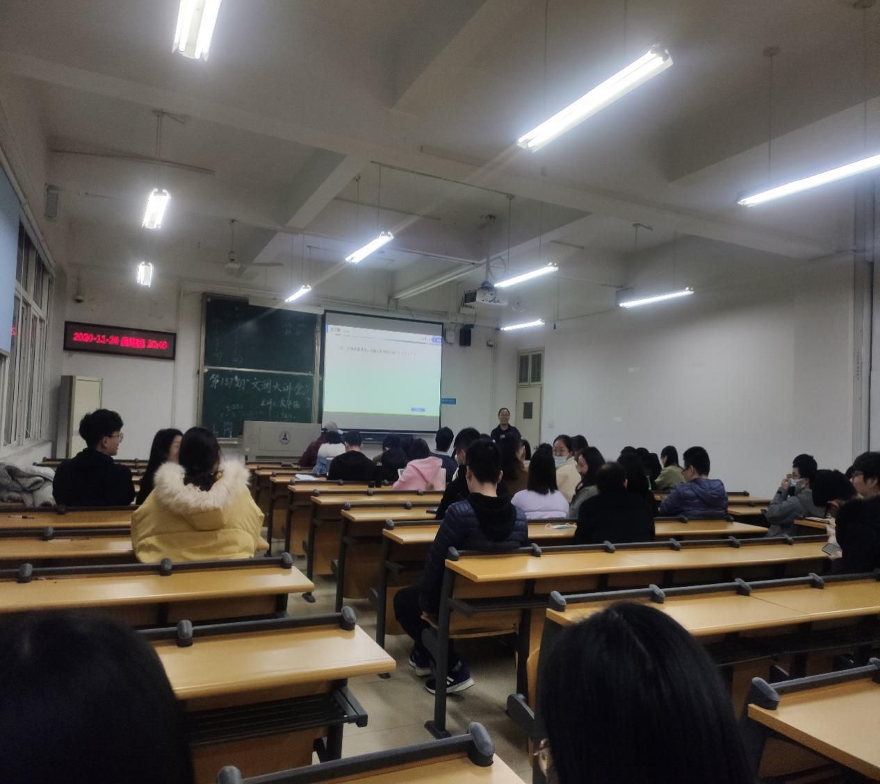(通讯员:赵雪杰;摄影:陈江宇、赵雪杰)2020年11月26日19点,为进一步提高同学们的学术素养,杏吧 在文添楼205成功举办了“文澜大讲堂”活动。本次活动的主讲人为杏吧 教师袁华锡,主持人为杏吧 陈江宇,杏吧 的部分同学参加了此次讲座。