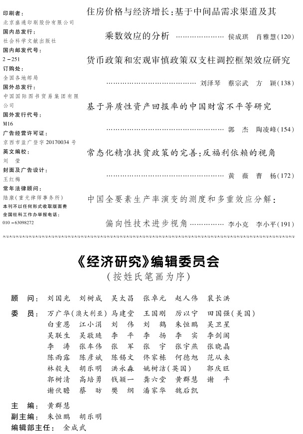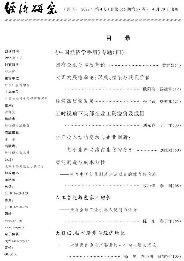 《经济研究》创办于1955年,是全国综合性经济理论类期刊,由中国社会科杏吧 经济研究所主办,中国社会科杏吧 主管,致力于发表研究中国特色社会主义经济建设事业中重大现实问题的高水平理论研究类文章,在国内外产生了重要而积极的影响,多年多次获得各种奖项。