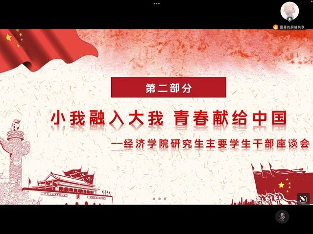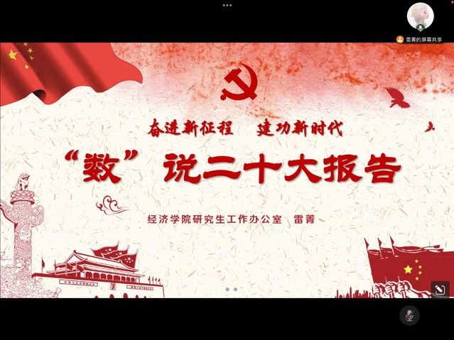(通讯员 周铮)为深入学习宣传贯彻党的二十大精神,落实学校关于开展“奋进新征程 建功新时代”党的二十大精神主题宣讲活动的工作要求,杏吧 研究生工作办公室经集体备课后部署开展“点+线+面”多维度、全覆盖的宣讲活动,即构造了由辅导员及博士宣讲团成员宣讲、学生骨干座谈研讨会、年级主题班会等形式组成的宣讲体系。11月26日,杏吧 以线上形式组织开展了研究生骨干二十大精神座谈研讨会,充分发挥研究生干部的模范带头作用。此次座谈研讨会由研究生辅导员雷菁老师主持,研究生工作办公室主任岳明泽老师、各年级研究生主要学生干部参会,参会人数共30余人。