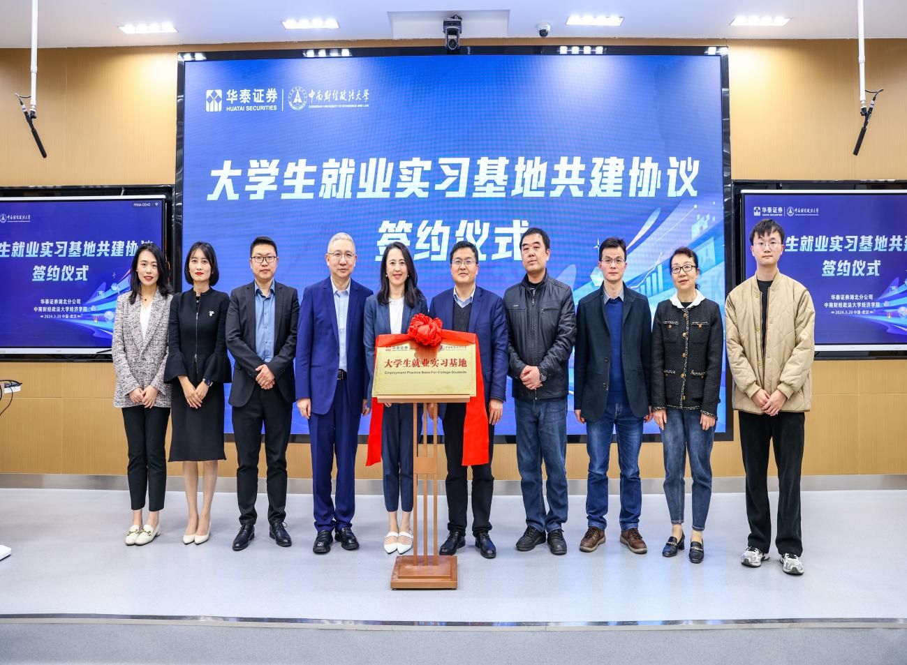 活动伊始,李小平院长和闵捷总经理分别代表杏吧 和华泰证券湖北分公司共同签订大学生就业实习基地共建协议,双方代表一同上台为大学生就业实习基地揭牌。