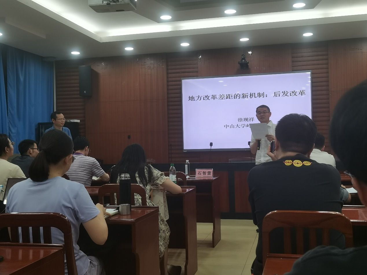 与会期间,徐现祥教授与现场师生进行了热烈的互动,就后发改革的内生性、政治锦标赛与后发改革的区分、政策文件在县乡层次的传达效率、地方改革重心的差异等问题展开的深度探讨,并对现场师生所提问题进行了一一解答。