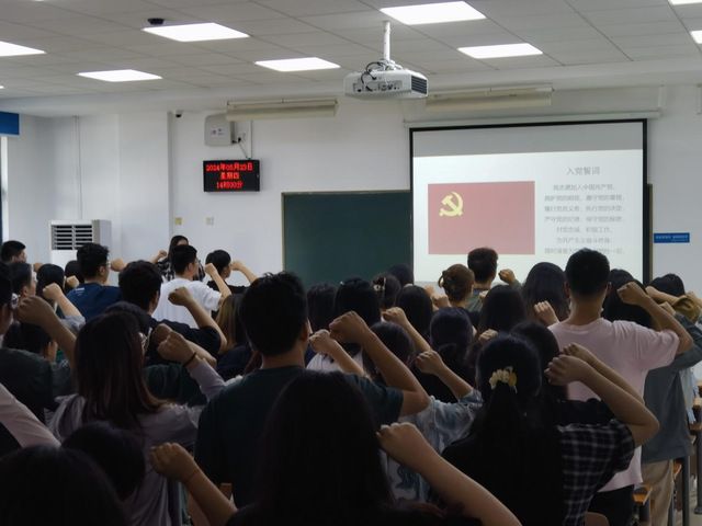 会议第一项,第二支部组织委员胡瑜佳同学带领三个支部全体党员同志重温入党誓词。在重温入党誓词后,胡玉佳同学带领全体党员集中温习了《中国共产党章程》第三章——党的中央组织的第十九条至第二十四条,加强了支部党员的党性修养。