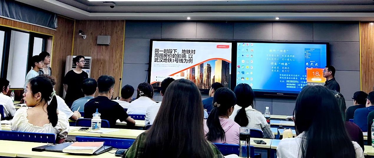 在“课堂实践”部分中,参会学生代表分享了自己对城市发展的思考,从地铁开通角度讨论其对城市房价的影响。石智雷教授对参与分享的同学进行表扬,同时也指出研究存在的问题,并详细耐心地逐一解答同学们的疑惑。