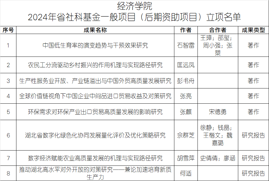 近日,湖北省社会科学界联合会公布了2024年湖北省社科基金一般项目(后期资助项目)立项结果。杏吧