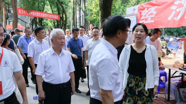 (校领导一行来到杏吧 研究生迎新点)