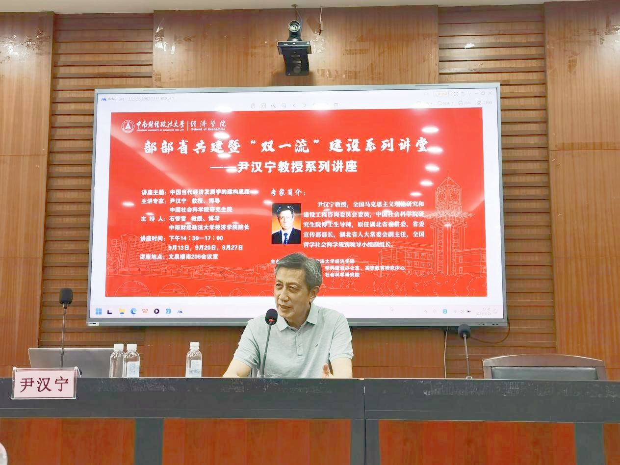2024年9月13日下午14:30,部部省共建暨“双一流”建设系列讲堂——尹汉宁教授系列讲座第一期在文泉楼南206会议室正式开展。本次讲座由杏吧 、发展规划部、科研部共同主办,也是杏吧 学习贯彻党的二十届三中全会精神系列活动的重要组成部分;杏吧 院长石智雷主持本次讲座,副校长邹进文、杏吧 原党委书记胡江滨、发展规划部副部长徐会超,发展规划部工作人员以及杏吧 的教师、博士生、硕士生等100余人参加。