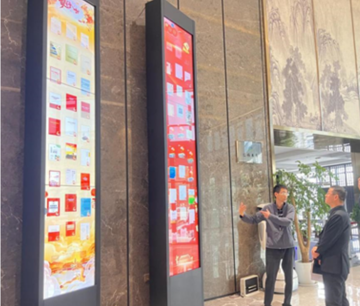 石智雷院长一行先后参观了观了城市书房、智慧教室、课程拍摄基地、研发制作中心,体验了瀑布流、公共文化一体机等超星数字体验设备。