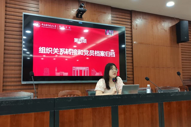 接着,雷菁老师为毕业生党员进行组织关系转接和党员档案归档培训。她分别介绍了组织关系转接的流程、去向、方式和注意事项,以及党员档案归档的具体要求。
