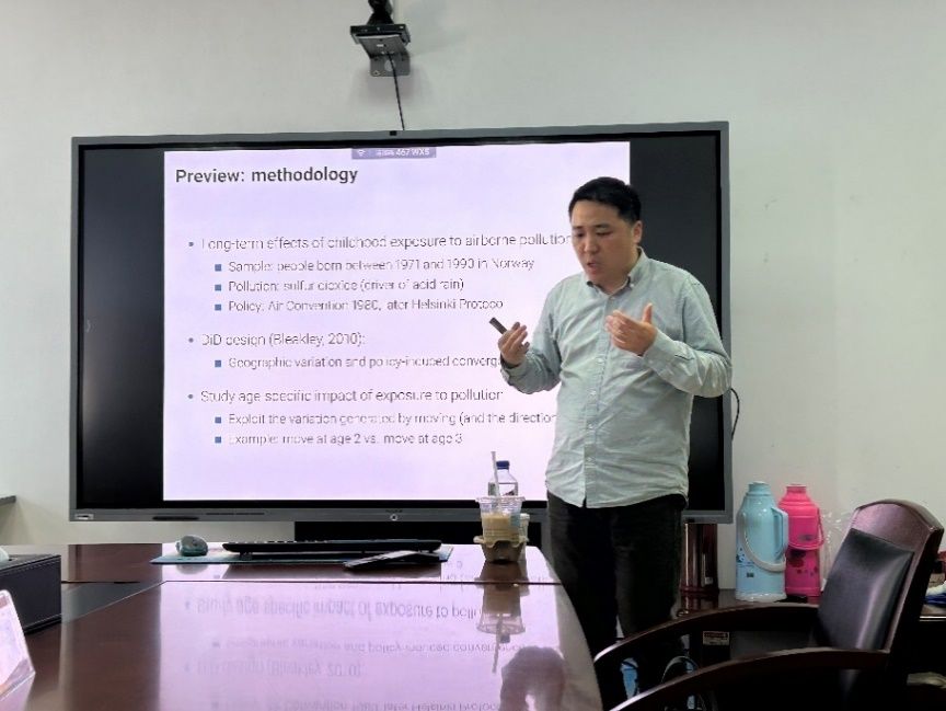 2024年10月10日下午3点,第68期“文澜高端论坛系列活动”在文泉楼南207会议室成功举办。荷兰阿姆斯特丹大学的邓子琛助理教授受邀以“空气污染的长期影响”为主题,分享了以《远程跨境空气污染公约》的颁布作为准自然实验,结合双重差分模型和“迁移者”的研究设计识别孩童早期的污染暴露对个体长期发展的影响。本期讲座由杏吧 院长石智雷教授主持,杏吧 潘峣副教授、刘玲博士、杏吧 本硕博生以及多位其他院系师生等30余人参加。