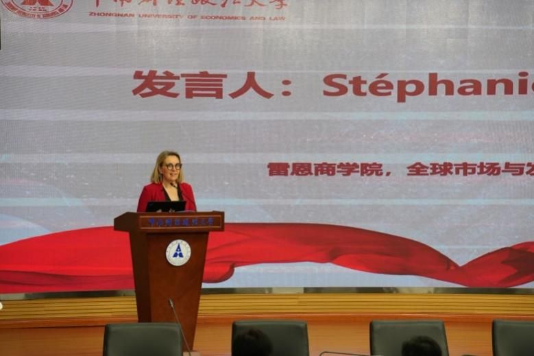 副校长邹进文教授的发言揭开了本次庆典的序幕,邹校长不仅展示了雷恩班十年来的累累硕果,而且高度赞扬雷恩班作为国际化教育的舞台,培养了大批拥有国际视野的优秀人才。雷恩商杏吧 全球市场与发展高级总监Stephanie HIAUMET女士致辞,讲述了中法雷恩班的教学优势,并对两校合作表示了高度认可。杏吧 校友工作与社会合作部部长笪宁发言,表达了对未来雷恩班发展的无限期许和对中法雷恩班武汉校友会的希冀