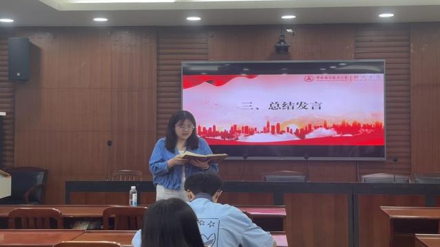最后,岳明泽老师对宣讲团成员的试讲进行了点评,她充分肯定了各宣讲团成员本次试讲的表现,表示各成员的内容紧紧围绕习近平经济思想理论,大家从各个视角切入,彰显了学科自信、理论自信、青年自信。雷菁老师对同学们的宣讲技巧提出建议,“宣讲需要融入一些肢体语言,要有眼神的交流”,同时她提到,接下来宣讲团要通过集体备课、专家指导、高校联学联建等方式学习理论知识,总结宣讲经验,在集思广益之中实现资源共享,在群策群力之下展现青年担当。