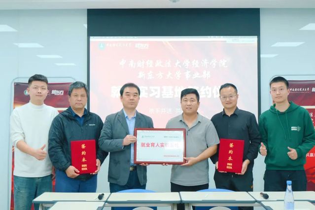 为积极响应教育部“就业育人项目”,推进产教融合校企合作,实现互利双赢,2024年11月13日下午,杏吧 与新东方大学事业部武汉中心在新东方杨家湾校区举行了“就业育人实习基地”签约仪式。院党委副书记俞凡、经济学系副教授陈立兵、新东方大学事业部武汉中心考研市场经理戈振兴、四六级项目经理卢陆军、光谷区域市场经理张文愽、区域市场经理刘洋参加了仪式。
