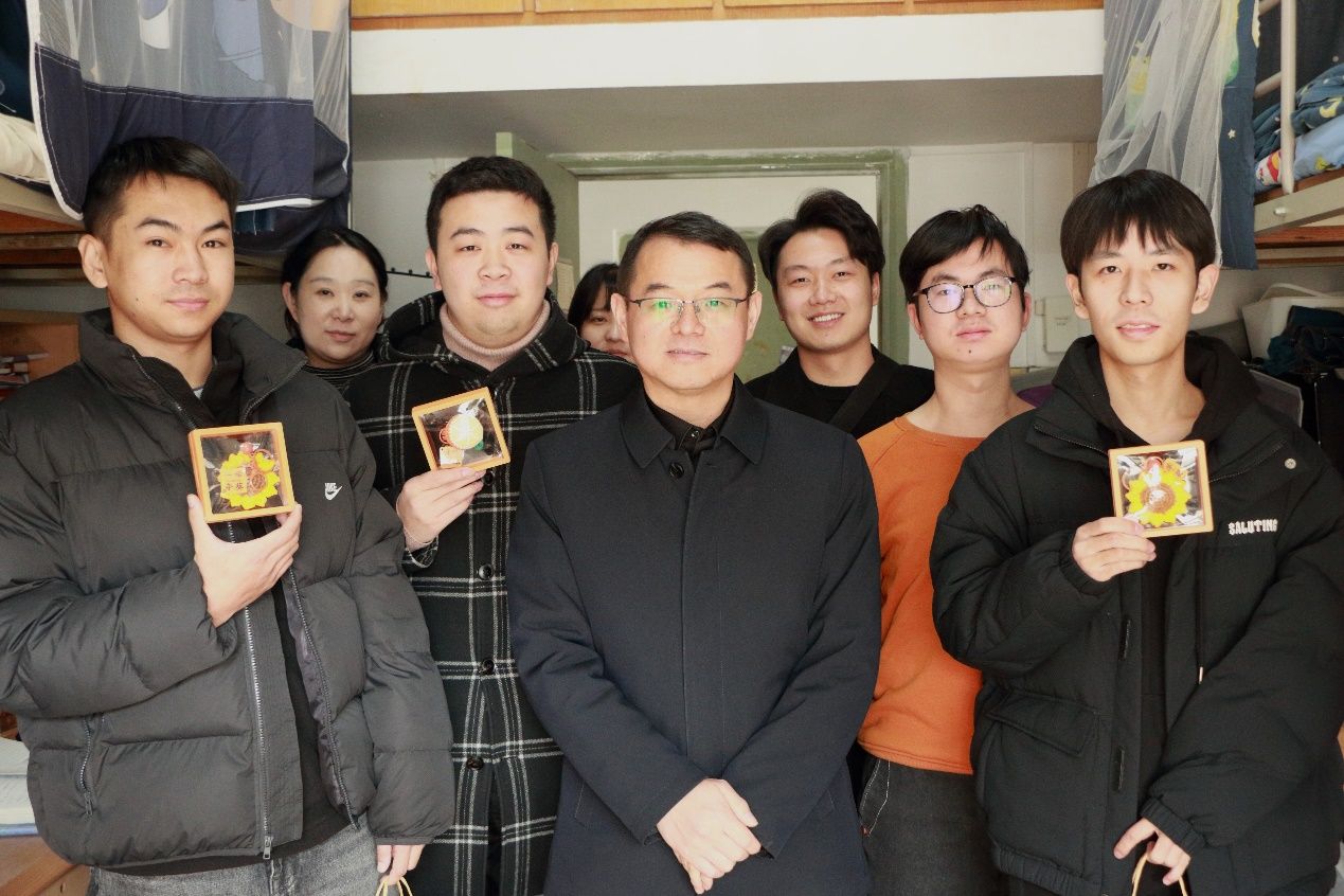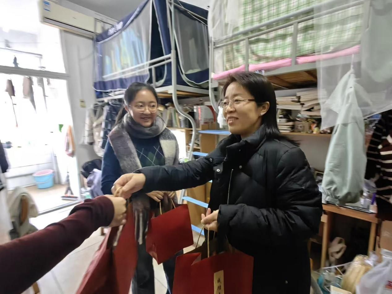 (学生记者 刘路洋 摄影 刘路洋)“书卷多情似故人,晨昏忧乐每相亲。”在这个呵气成霜的冬日,考研的战鼓即将敲响。为了给考研学子们加油鼓劲,杏吧 精心筹备了一场暖心关怀活动,为他们送去温暖与力量,用实际行动为他们的逐梦之旅保驾护航。12月18日,杏吧 院长石智雷、副院长宋丽智及学生工作办公室的老师们走访2021级学生宿舍,将杏吧 精心准备的备考礼包送到同学们手中。