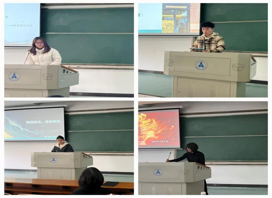 国商2201班彭熙通过对比校园学习与社会实践的差异,剖析了理论知识与实践能力的辩证关系,呼吁同学们要全面提升综合素质,以实际行动践行"强国有我"的青春誓言。经实2201班张瀚丹则分享了寒假期间采访20余位优秀校友的收获,通过生涯人物访谈为职业规划赋能,展现了新时代青年对个人发展的深入思考。