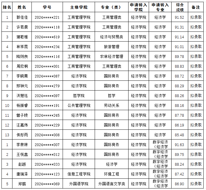 转入后续事宜,请各位同学关注教务部网站发布的通知文件。