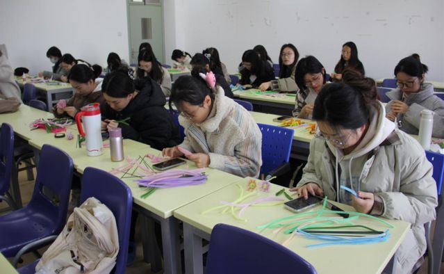 通过精心制作,一朵朵花朵绽放在指尖。在这场指尖与心灵的对话中,同学们不仅以艺术之名礼赞春天,更以永不凋零的花束致敬女性的芳华,让扭扭棒的柔韧与花朵的绚烂交织成对“她力量”最深情的告白,以巾帼之志谱写自己的青春篇章。