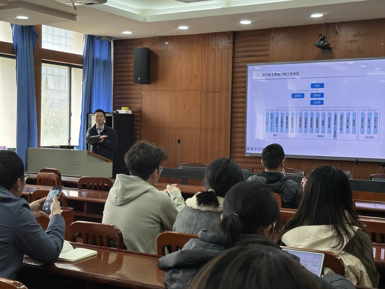 讲座开始,兰建州总裁从投行工作的业务方向、职级体系和工作内容等方面介绍了投行工作的背景。接着兰建州总裁重点介绍了投行工作所需的核心能力要求,指出同学们需要提升“专业知识与技能、团队协作、沟通能力、客户服务综合能力和抗压能力”五个方面的专业素养。
