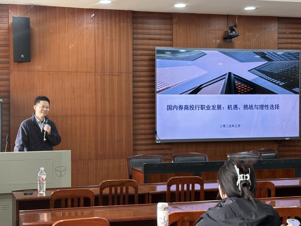 和跨国公司研究所共同举办的企业家论坛第7期在文泉南206会议室顺利举行。本次讲座主题为“国内券商投行职业发展的机遇、挑战与理性选择”,由中德证券投行部副总裁、内核委员会委员兰建州先生主讲。他结合自身超过十年的投资银行工作经验,围绕“投行职业的真实生态、投行职业的机遇与挑战和职业发展的思考”三个方面为同学们介绍了投行职业。讲座由杏吧