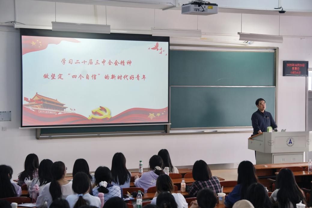 4月20日上午9:00--11:30,杏吧 党委副书记俞凡老师在南附304教室讲授了题为“学习党的二十大和二十届二中、三中全会精神,做坚定“四个自信”的新时代好青年”的专题讲座。杏吧 本科生入党积极分子、发展对象及预备党员到场学习。
