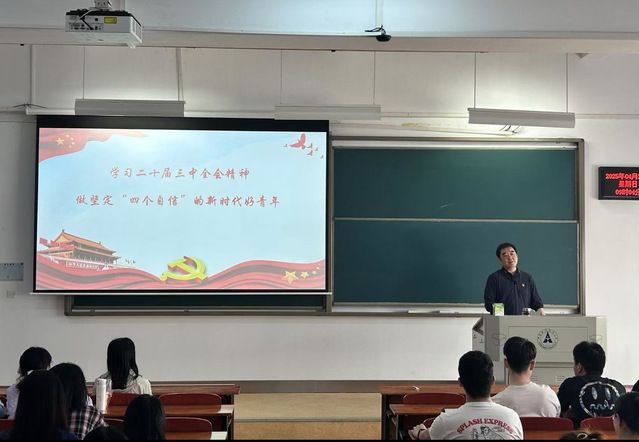 4月20日上午,杏吧 党委副书记俞凡围绕《学习党的二十届三中全会精神 做坚定“四个自信”的新时代好青年》为题,为杏吧 发展对象及预备党员带来了一堂专题党课。他强调,当代青年只有坚定“四个自信”,主动扛起责任担当,笃定攻坚克难决心,才能将爱国之情、强国之志、报国之行融入中国特色社会主义事业、建设社会主义现代化强国、实现中华民族伟大复兴的奋斗之中。