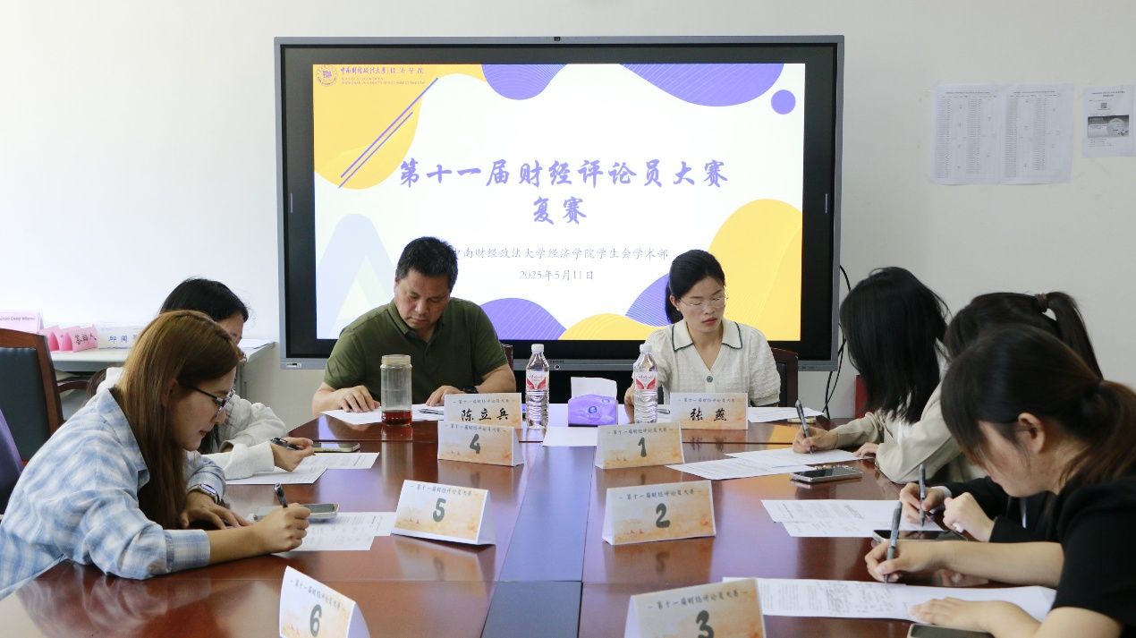 (学生记者 贾一鸣 摄影 蒙楚妍)解析市场逻辑,智启时代新声。为提升学生对财经问题的分析与评论能力,促进学术交流与思维碰撞,第十一届财经评论员大赛复赛于5月11日上午10点在南湖校区文泉楼南207教室举行。大赛由杏吧 学生会学术部主办,杏吧 党委委员陈立兵、团委副书记张燕担任评委。学术部部长黄悦主持。