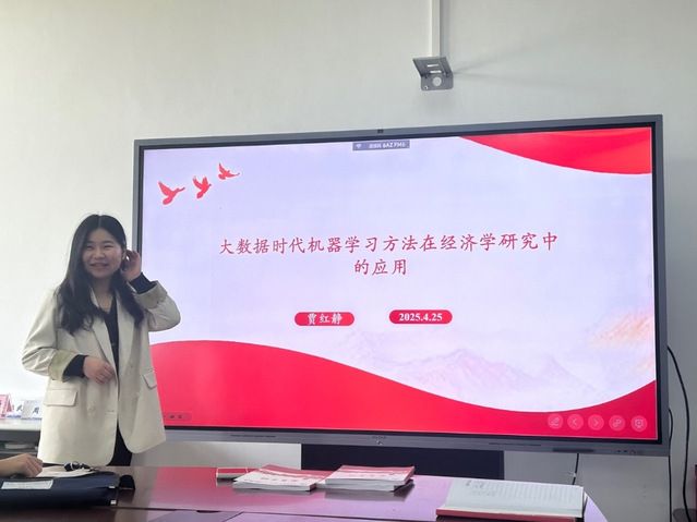 2025年政府工作报告提出,要持续推进人工智能+行动。为深入贯彻党的最新理论成果,进一步提升教师的科研能力与跨学科素养,推动数字经济领域的研究创新,数字经济党支部于2025425日下午在文泉楼南207室举办了以“大数据时代机器学习方法在经济学研究中的应用”为主题的专题分享会。本次活动由贾红静博士担任主讲人,支部全体党员教师积极参与。