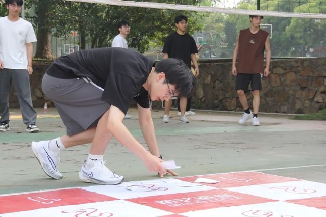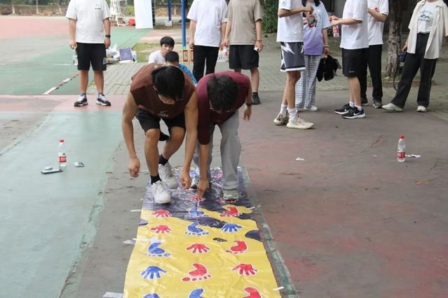 手忙脚乱项目则考验着同学们身体的协调性,大家在规定图案中手脚并用,灵活移动,即便状况频出,可参赛同学脸上始终洋溢着灿烂笑容,尽情享受着比赛的乐趣。
