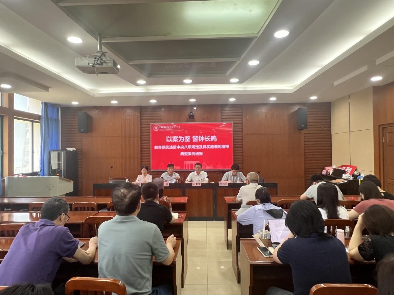 刘刚书记聚焦深入贯彻中央八项规定精神学习教育、师德师风、反腐倡廉三大板块进行了警示教育,并通过5个典型案例展开深入剖析,提醒各位老师务必以这些案例为反面教材,时刻保持清醒的头脑,牢牢坚守道德与纪律底线,绝不触碰红线,以高度的责任感和使命感投身到教育事业中。