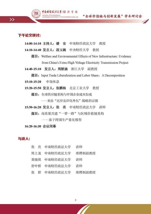 【学术会议】全球价值链重构背景下中国高水平对外开放暨“全球价值链与创新发展”青年科研创新团队学术研讨会