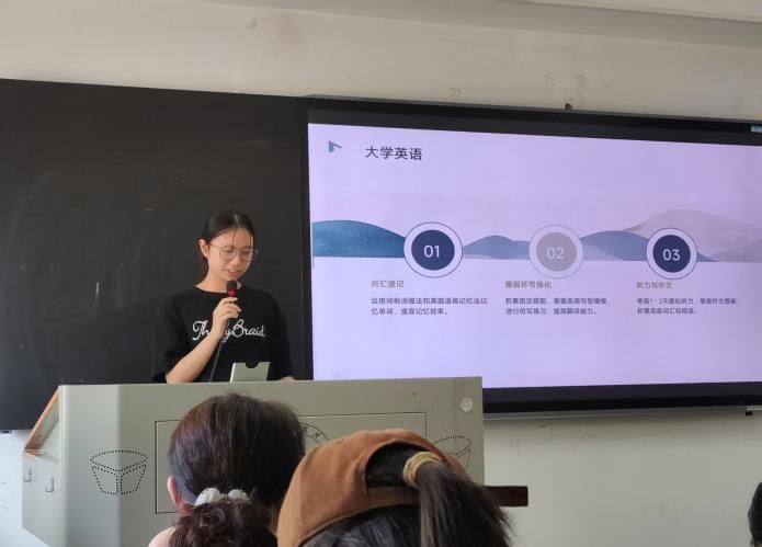 经济2401班逄玉鑫分析班级现状,针对微积分挂科率高的问题,设定期末及格率目标,推荐微积分结合练习册刷题,经济学原理结合网课资源进行学习等方法。经济2402班也以“消灭不及格”为目标,着重强调分析学习方法、态度等问题,计划通过总结错题、调整方法提升成绩。经济2403班汇报人陈栩瑶提出挂科率低于10%的指标,分四级冲刺与专业课攻坚阶段规划复习,以“1+1+1”分组机制促进同学互助。经实2401班在展示中先分析了班级成绩分布,针对微积分挂科率高、英语低分段人数多等问题,设定期末的总体目标,制定详细的时间规划。数经2401班汇报人以“十天高效备考”为核心,规划分两轮复习阶段,细化每日早至晚间的记忆与刷题任务以提升复习效率。
