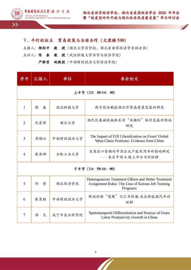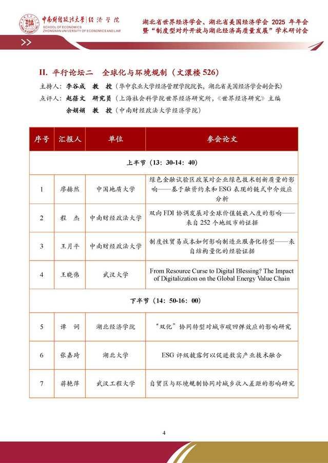 【学术会议】湖北省世界经济学会、湖北省美国经济学会2025年年会暨“制度型对外开放与湖北经济高质量发展”学术研讨会 会议议程