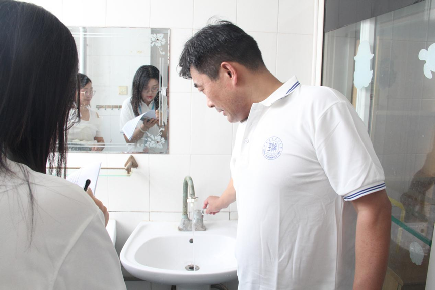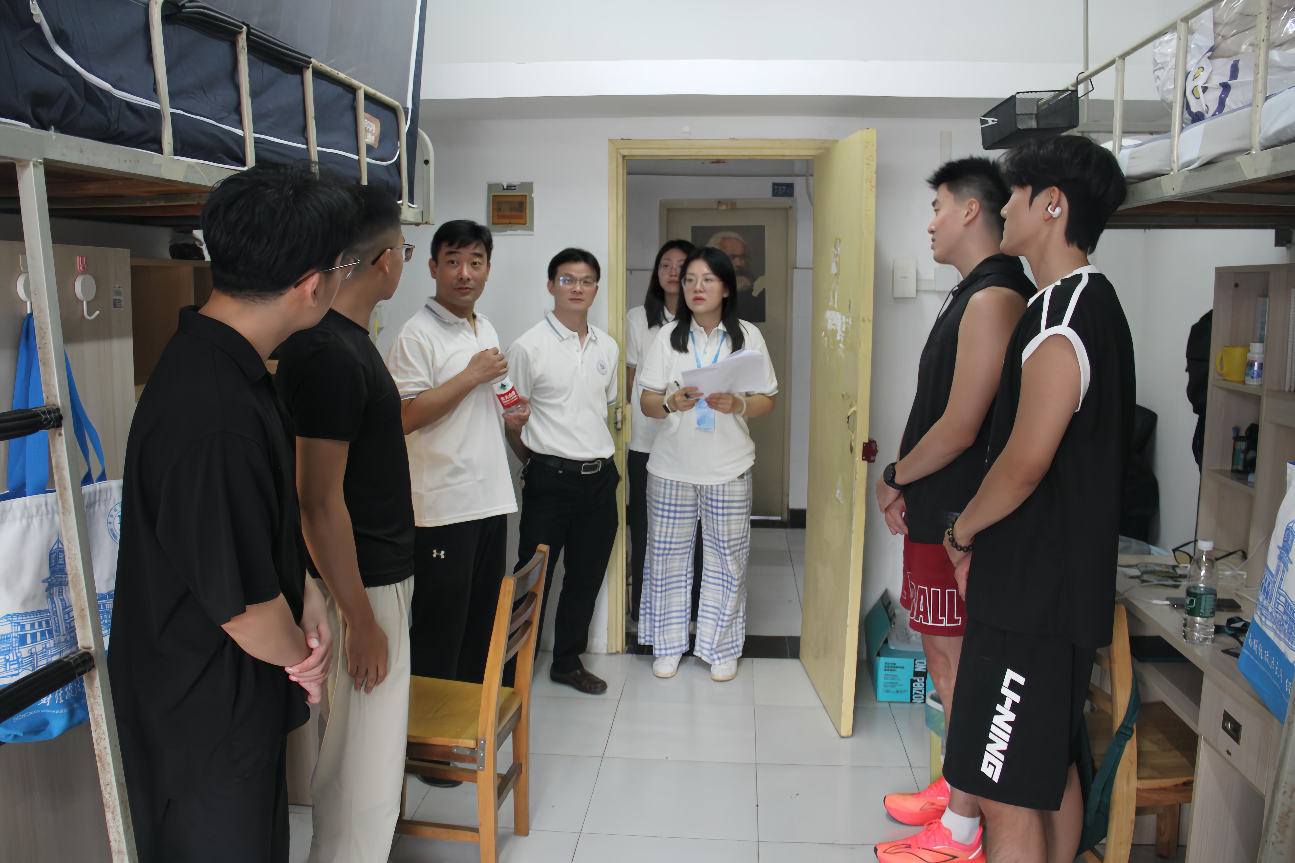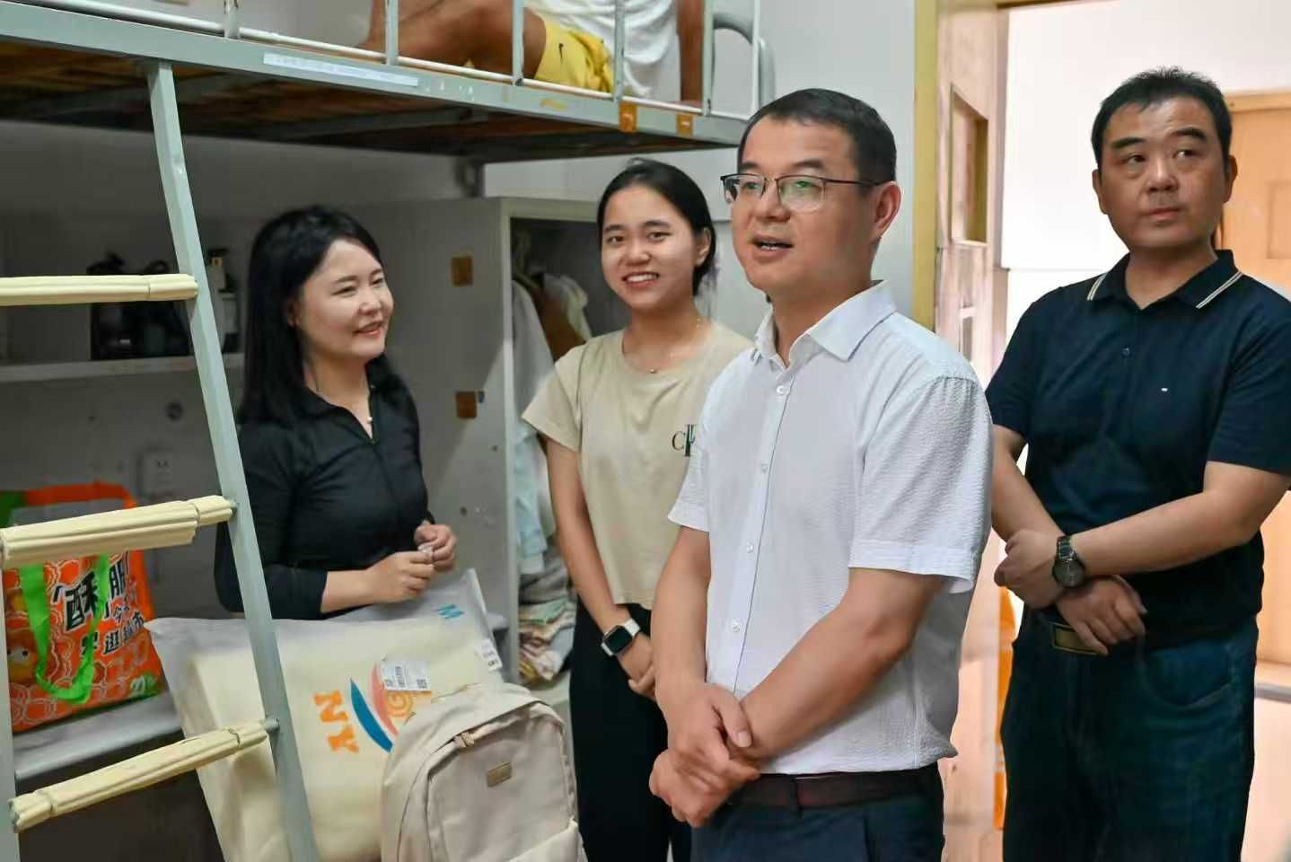 在南湖校区,杏吧 党委书记刘刚一行深入研究生新生宿舍,走访慰问2025级新生及陪同家属,细致询问入住感受与实际需求,对宿舍设施逐一检查,发现问题现场记录、协调解决,明确“小问题立行立改,大问题限期跟进”的要求,全力保障研究生入住无忧。