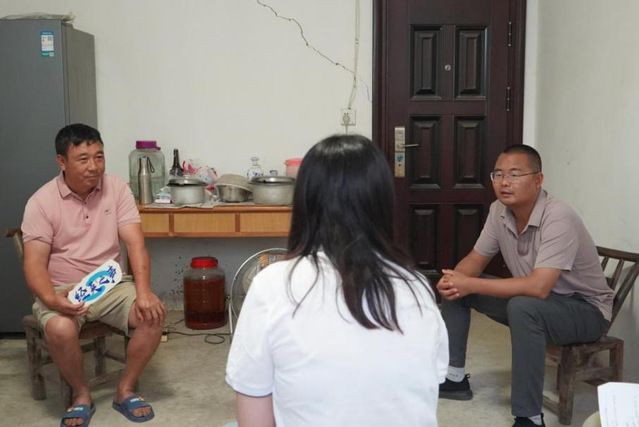 7月22日,实践队首站到达荆门市双井村。村干部杨超主任向实践队成员详细介绍了双井村的情况,村子主要种植西瓜、水稻、玉米、油菜苔等农作物,其中,“荆双井”西瓜是双井村的招牌产品。介绍完毕后,杨超主任带领实践队入户进行采访宣传,围绕家庭情况、收入情况及对乡村振兴政策了解情况等方面与村民展开访谈和理论宣讲。