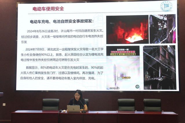 面对科技日新月异的变化,电信诈骗手段也层出不穷。张芳同学简要剖析了AI诈骗这一新型网络欺诈方式,通过播放视频案例与普及网络法律知识,强化了警示效果。此外,她提醒新生注重消防、交通、人身及财产等多方面的安全防护。