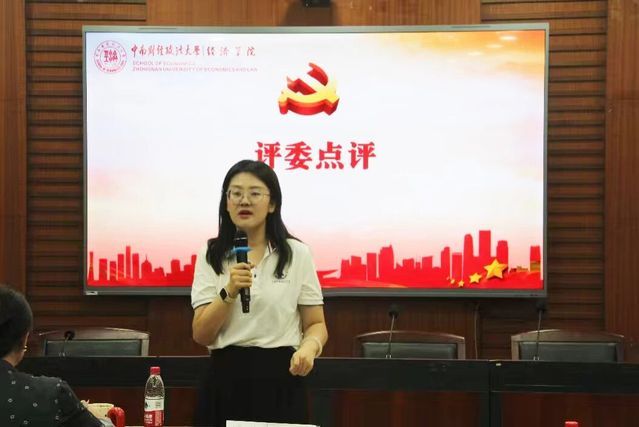 2023级经济思想史专业的詹敬彬同学以“基于电影《731》的党史宣讲”为题,以电影为切口深刻讲述了“抗战胜利是无数先烈用鲜血换来的”,激励我们坚定传承抗战精神的决心;2025级西方经济学专业的马晓慧同学以“传送曙光的电波”为题,为我们带来了抗战革命英雄李白同志用生命传送电报,用沉默面对酷刑,以自我牺牲换来千万人的生命的悲壮故事;2025级世界经济专业李慧孜同学以“两弹元勋邓稼先”为题讲述了邓稼先先生用一生践行“爱国、励志、求真、力行”的誓言和共产党员的担当,激励我们把个人理想融入民族复兴的洪流。