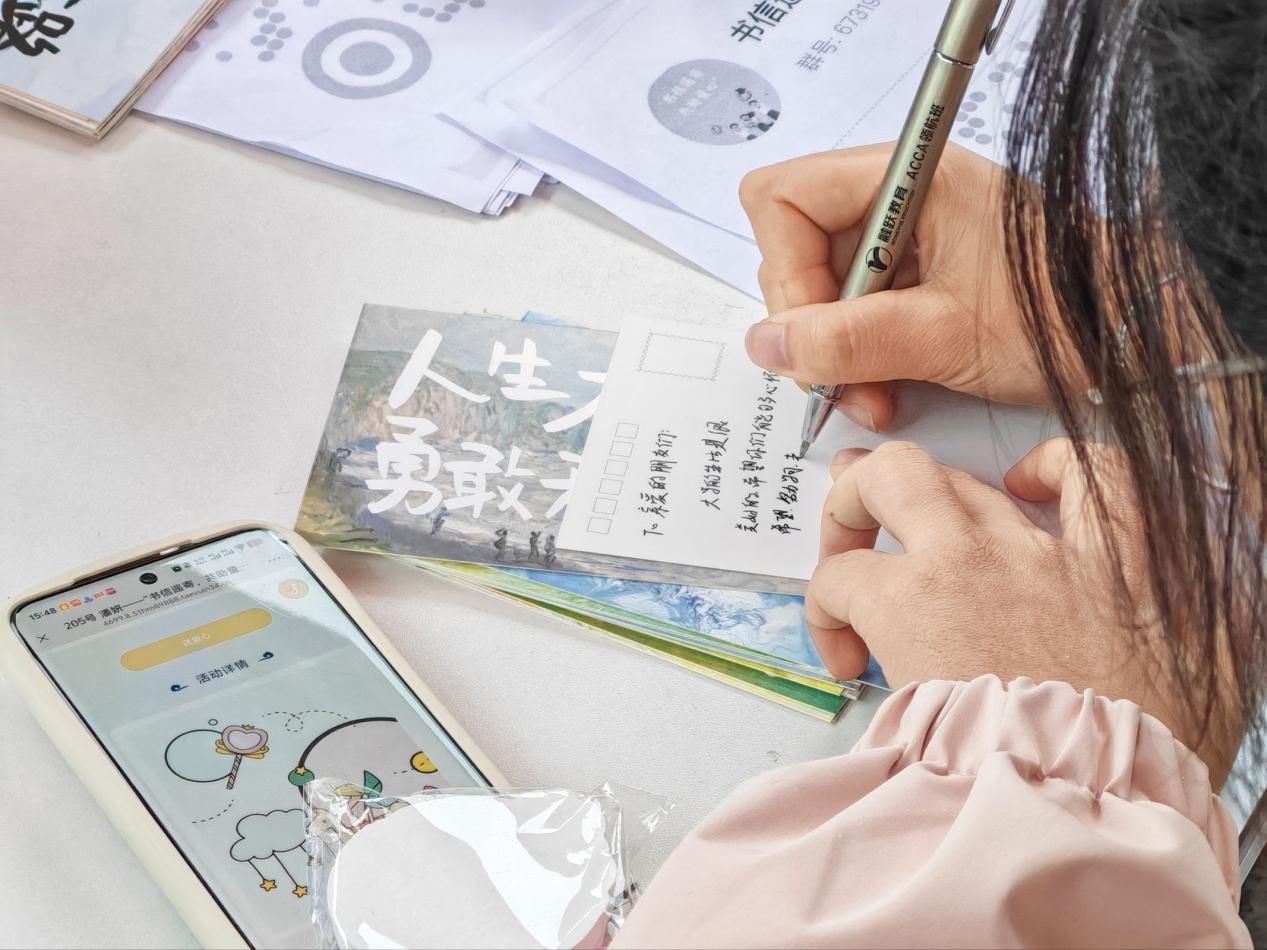 活动进行时,在志愿者们的组织与协助下,参与者们暂别即时通讯中冰冷符号堆砌的机械问候,选择重拾笔与纸,用书信的仪式感和手写的真诚,寄去一份或鼓励或分享的关怀;扫码进群,在一张张相片里分享校园的晨曦、远方别致的风景,用注入了爱的温度的镜头,给孩子们的世界增添些许色彩;挑一本好书,附上寄语,送去一件件在瞬息变化时代里最好的“慢礼物”……