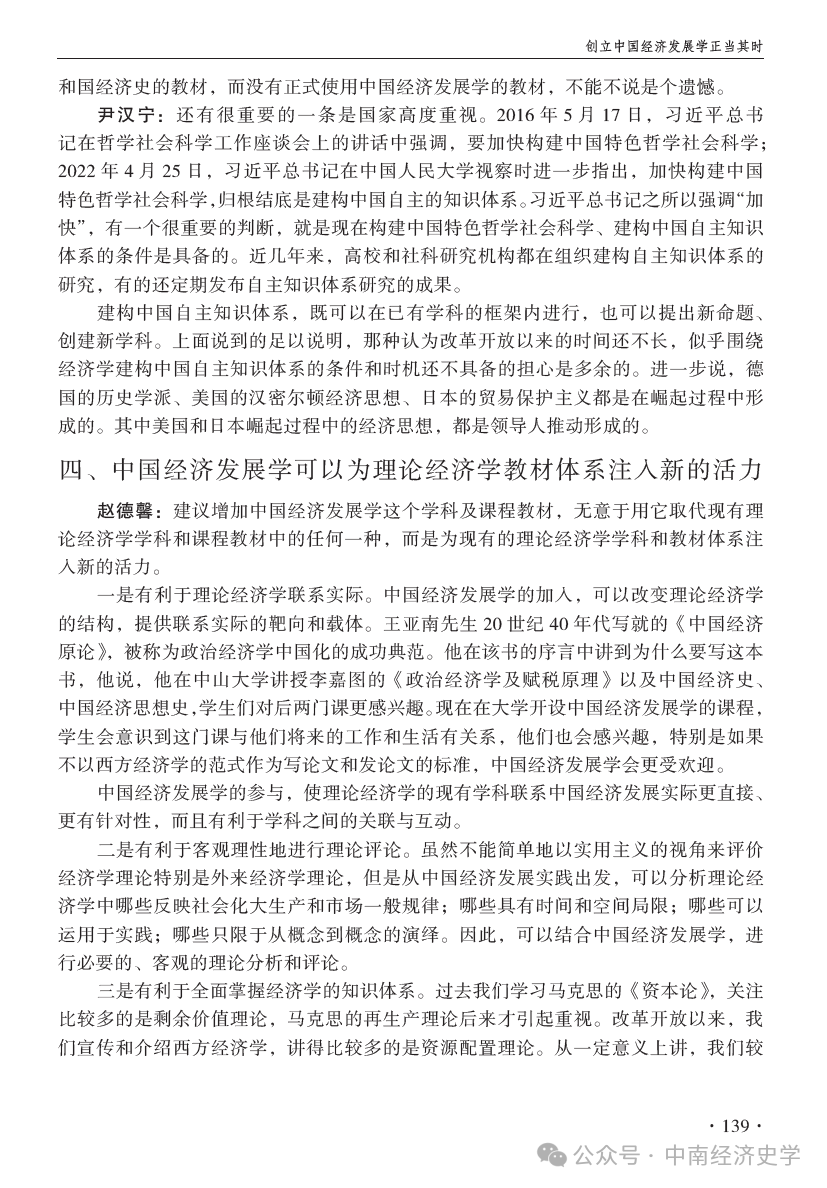 赵德馨,尹汉宁:创立中国经济发展学正当其时