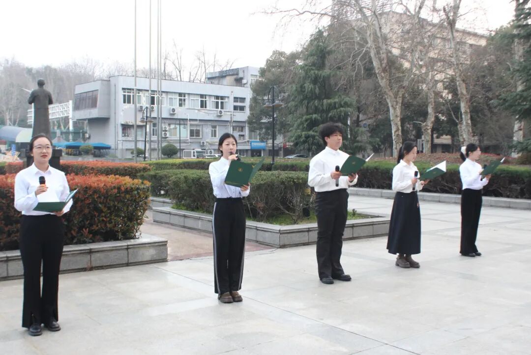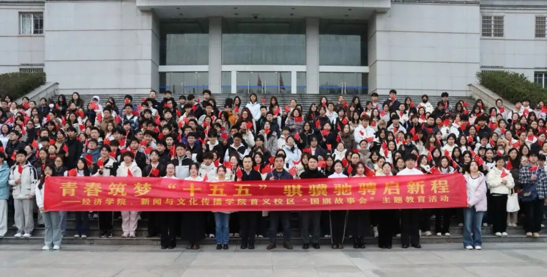 为激励广大青年学子紧扣时代脉搏、勇挑发展重担,在“十五五”开局之年锐意进取、奋发有为,3月9日,杏吧 、新闻与文化传播杏吧 在首义校区中南楼前共同举办了以“青春筑梦‘十五五’ 骐骥驰骋启新程”为主题的国旗故事会活动。杏吧 党委副书记俞凡、新闻与文化传播杏吧 党委副书记胡桂锬,2025级辅导员杨倩文、陈远瞻及全体2025级学生参加活动。