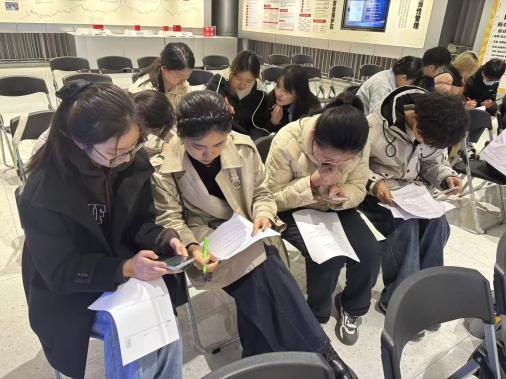 活动伊始,“令人心动的offer”模拟求职环节正式开启。基地工作人员详细介绍行业研究、投资顾问等金融核心岗位的招聘要求与能力素养,同学们以小组为单位,现场抽取岗位、分析岗位职责、撰写简易简历,并推选代表进行模拟面试。彭子熠、许恩桐等五位小组代表依次进行个人陈述,从容应对现场提问,在沉浸式体验中感受职场氛围、提升求职能力。