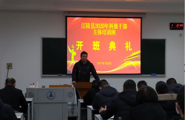 2021年1月6日下午,江陵县2020年科级干部主体培训班在杏吧 首义校区正式开班,来自江陵县委党校的51名县各部门领导干部在杏吧 进行为期四天的培训学习。杏吧 院长助理陈立兵、朱巧玲教授、江陵县委党校办公室主任邵云芳、江陵县委党校教务科研股科长盛颖出席开班仪式,杏吧 院长助理陈立兵主持仪式。